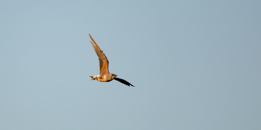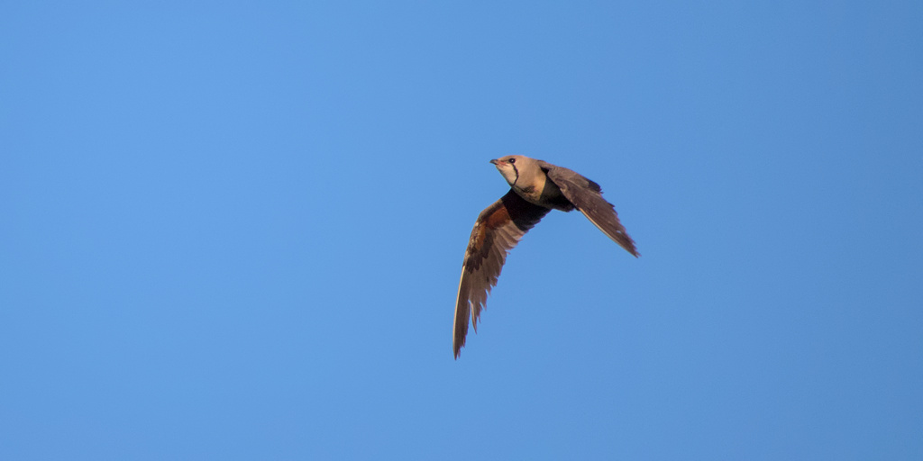 Eksoottinen kahlaaja oli antanut odottaa itseään tuntikausiakin, mutta nyt se pääsi jotenkin ilmaantumaan mullokselle ehkä vartin odottelun jälkeen. Se pönötti aikansa sijoillaan, alkoi pumpata kaulaansa ja nousi lentoon. Tätä samaa manööveriä se toisti useamman kerran seuraavan tunnin aikana. Vaikka edestakaisin lentely bongariporukkaa viihdyttikin, tosiasiallinen tarkoitus oli hyönteispyynti. Se näytti onnistuvan varsin hyvin ja oli onnistunut aiemminkin, koska oli jo viikon verran paikalla viihtynyt.